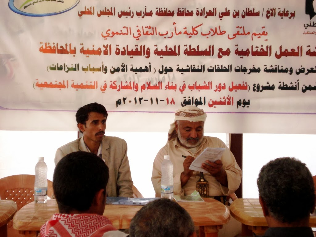 • كما أن الملتقى من والى الشباب (ذكور و إناث ) في محافظة مأرب ومنبرا لإيصال صوتهم والمطالبة بحقوقهم بمختلف أشكالها.
