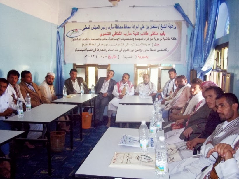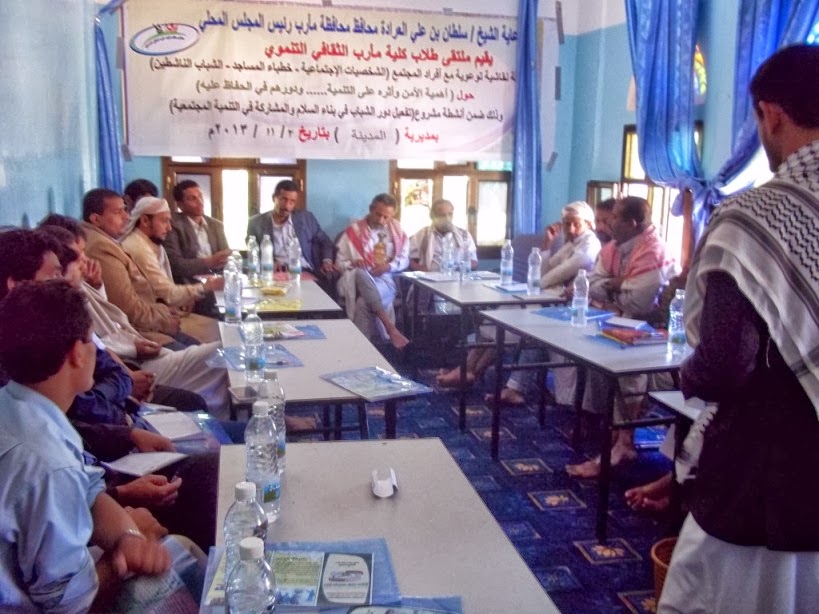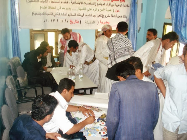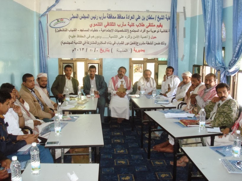 ضمن انشطة وفعاليات مشروع ((تفعيل دور الشباب في بناء السلام والمشاركة في التنمية المجتمعية )) وبحضور عميد كلية التربية والاداب والعلوم م/ مأرب الدكتور / حسين الموسائي ورئيس اللجنة الثقافية بالمحافظة أ/ سالم قردع