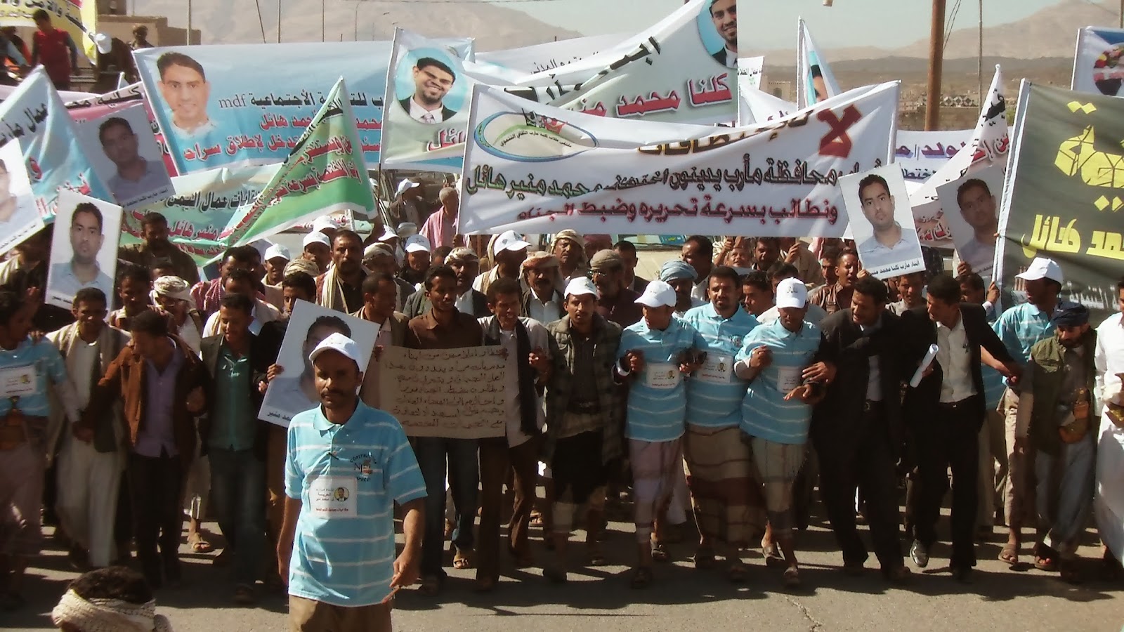 مسيرة حاشدة ينظمها أبناء مأرب و منظمات المجتمع المدني والغرفة التجارية جابت شوارع مدينة مأرب تنديدا بإختطاف الشاب / محمد منير هائل والذي أختطفته عناصر قبلية من قبيلة مراد محافظة مأرب ,, حيث أستنكر وندد المحتجون من أبناء قبيلة مراد وأبناء مأرب عامة ومنظمات المجتمع المدني بالمحافظة على اختطاف حفيد ال هائل سعيد أنعم من أبناء تعز ويطالبون الجهات المعنية بسرعة التدخل ومعاقبة الجناة..