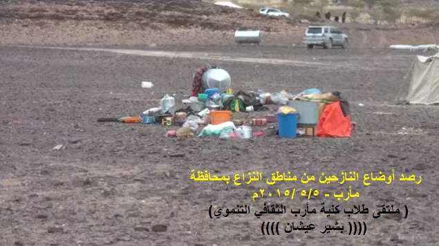 يوم امس وقبل امس من اوضاع مأساوية للمئات من الاسر النازحة جراء الحروب في محافظة مأرب فإننا نطالب المنظمات الدولية سرعة التجاوب لتلبية احتياجات النازحين كما طالب النازحين من اي طرف يستلم معونات من اي مكان لإغاثة النازحين ان يكون أهلا للثقة ويوصلها الى كل النازحين باسرع وقت ممكن ودون إنتقائية, كون الوضع مأساوي جدا