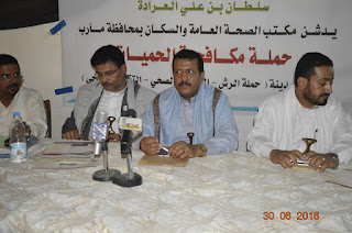 برعاية مكتب الصحة بالمحافظة والمجلس المحلي لمديرية المدينة دشن وكيل محافظة #مأرب د/عبدربه مفتاح ومدير مديرية المدينة ومدير مكتب الصحة بالمحافظة يوم امس الحملة الميدانية لمكافحة البعوض والتوعية بحمى الضنك واسبابها بمشاركة 55 متطوع ومتطوعة من ابناء المديري
